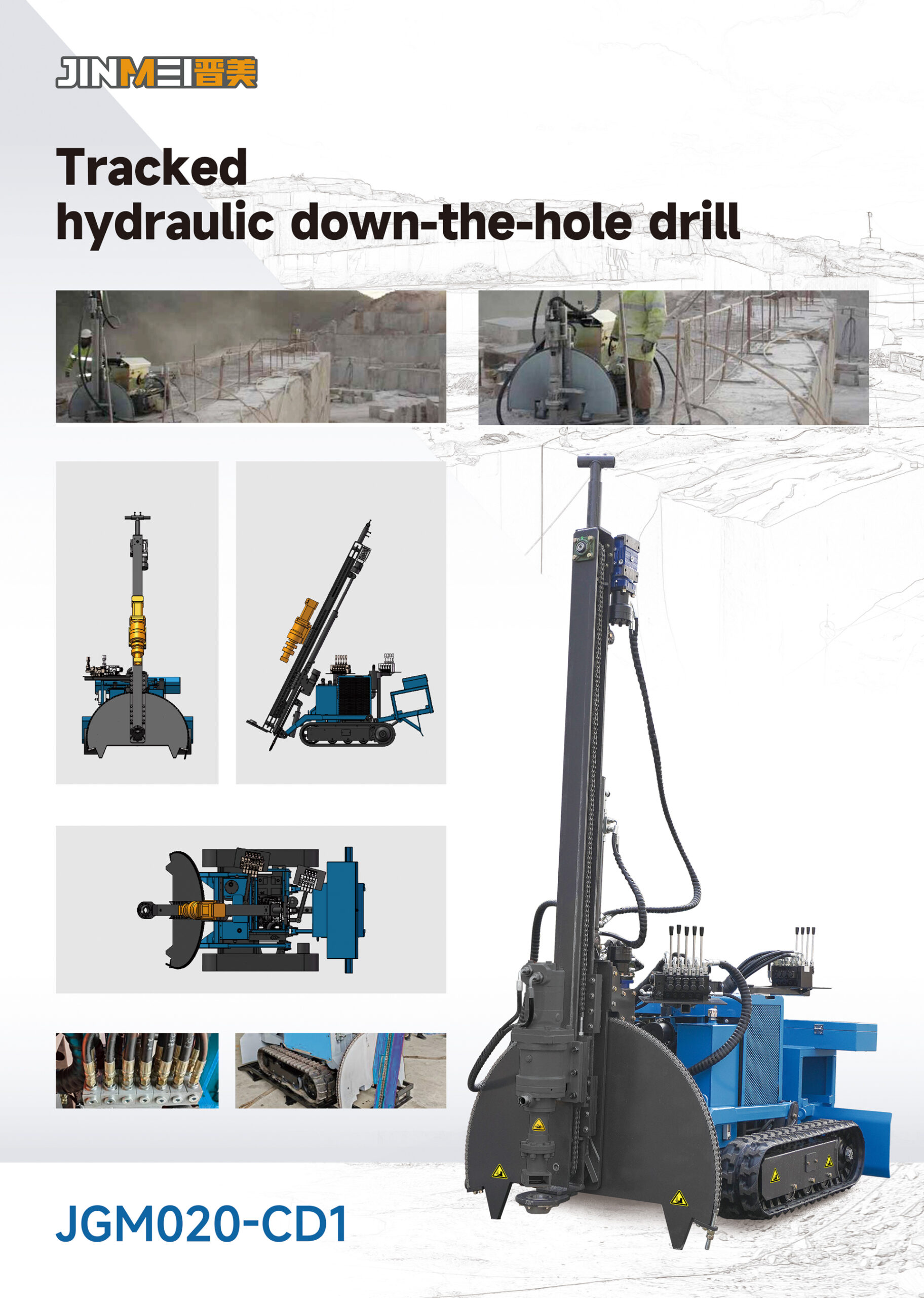 The crawler-type DTH drill, with its compact design and flexible crawler traveling chassis, can be easily moved and operated in a variety of complex terrains, which significantly improves the convenience of equipment deployment and site adaptability. Equipped with a high-performance power system, this drill features high drilling efficiency, which can effectively shorten drilling time and reduce construction costs. While ensuring the quality of hole formation, it greatly accelerates the project progress and helps the project be completed on schedule or even ahead of time. In addition, the equipment adopts advanced positioning and guiding technologies to achieve high-precision drilling, which provides a reliable guarantee for subsequent construction processes and ensures the overall quality and efficiency of the project.